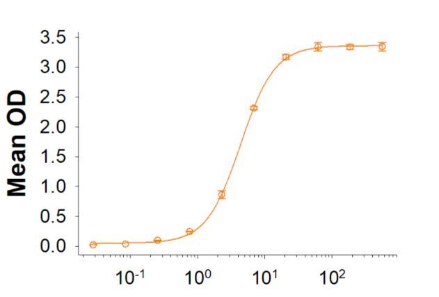 | Bio-activity : | Measured by its binding ability in a functional ELISA. When Recombinant SARS-CoV-2 Spike RBD Fc Chimera is immobilized at 0.2 µg/mL (100 µL/well), Biotinylated Recombinant Human ACE2 His-tag Avi-tag binds with an ED50 of 1.2-9.6 ng/mL. |