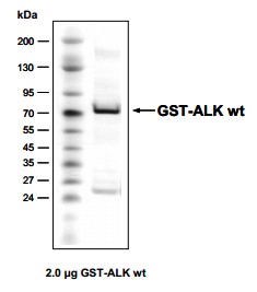 This gene encodes a receptor tyrosine kinase, which belongs to the insulin receptor superfamily. This protein comprises an extracellular domain, an hydrophobic stretch corresponding to a single pass transmembrane region, and an intracellular kinase domain. It plays an important role in the development of the brain and exerts its effects on specific neurons in the nervous system. This gene has been found to be rearranged, mutated, or amplified in a series of tumours including anaplastic large cell lymphomas, neuroblastoma, and non-small cell lung cancer. |