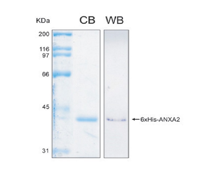 Product Overview : | Recombinant Human ANXA2 Protein 1-346 aa (full-length) with a 6xHis tag was expressed in E.coli. |