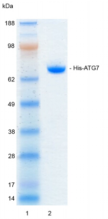 | Product Overview : | Recombinant human ATG7 (amino acid residues 1-706), fused with N-terminal His, was expressed in Insect sf21. |