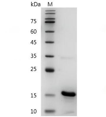 | Molecular Mass : | The protein has a calculated MW of 16.57 kDa. The protein migrates as 17 kDa under reducing condition (SDS-PAGE analysis). |