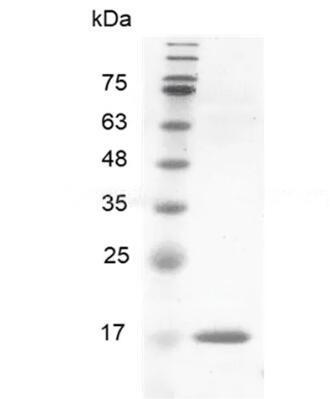 | Molecular Mass : | The protein has a calculated MW of 16.61 kDa. The protein migrates as 17 kDa under reducing condition (SDS-PAGE analysis). |