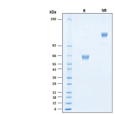 | Product Overview : | Recombinant human Alexa Fluor® 647 conjugated EMMPRIN/CD147 (Thr25-His205) protein with human IgG1 (Pro100-Lys330) Fc tag and His tag at C-terminus was expressed in mouse myeloma cell line. |