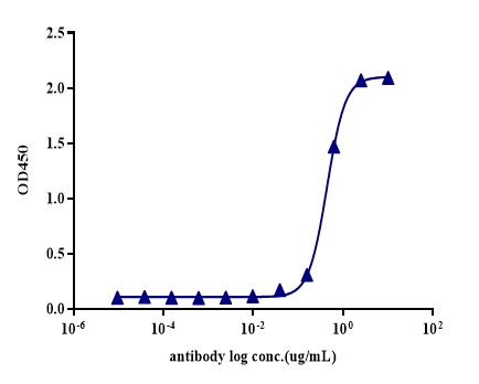| Bio-activity : | When Recombinant Human CD14/hFC Protein is immobilized at 5µg/mL (100 µL/well), the concentration of Anti-Human CD14 (Atibuclimab) that produces 50% of the optimal binding response is approximately 0.4 ug/ml. |
