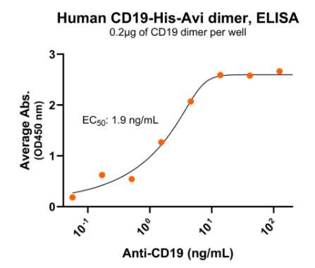 | Application : | Verified Applications: ELISA for CD19-specific antibody binding assays. Suggested Applications: SPR & BLI for CD19-specific antibody binding assays. Animal immunization, RUO. |