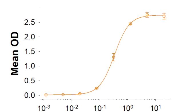 | Bio-activity : | The biotin to protein ratio is greater than 0.7 as determined by the HABA assay. Measured by its binding ability in a functional ELISA. When Recombinant Human CD200R1 Fc Chimera is immobilized at 2 µg/mL (100 µL/well), Biotinylated Recombinant Human CD200 His-tag Avi-tag binds with an ED50 of 0.1-0.6 μg/mL. |