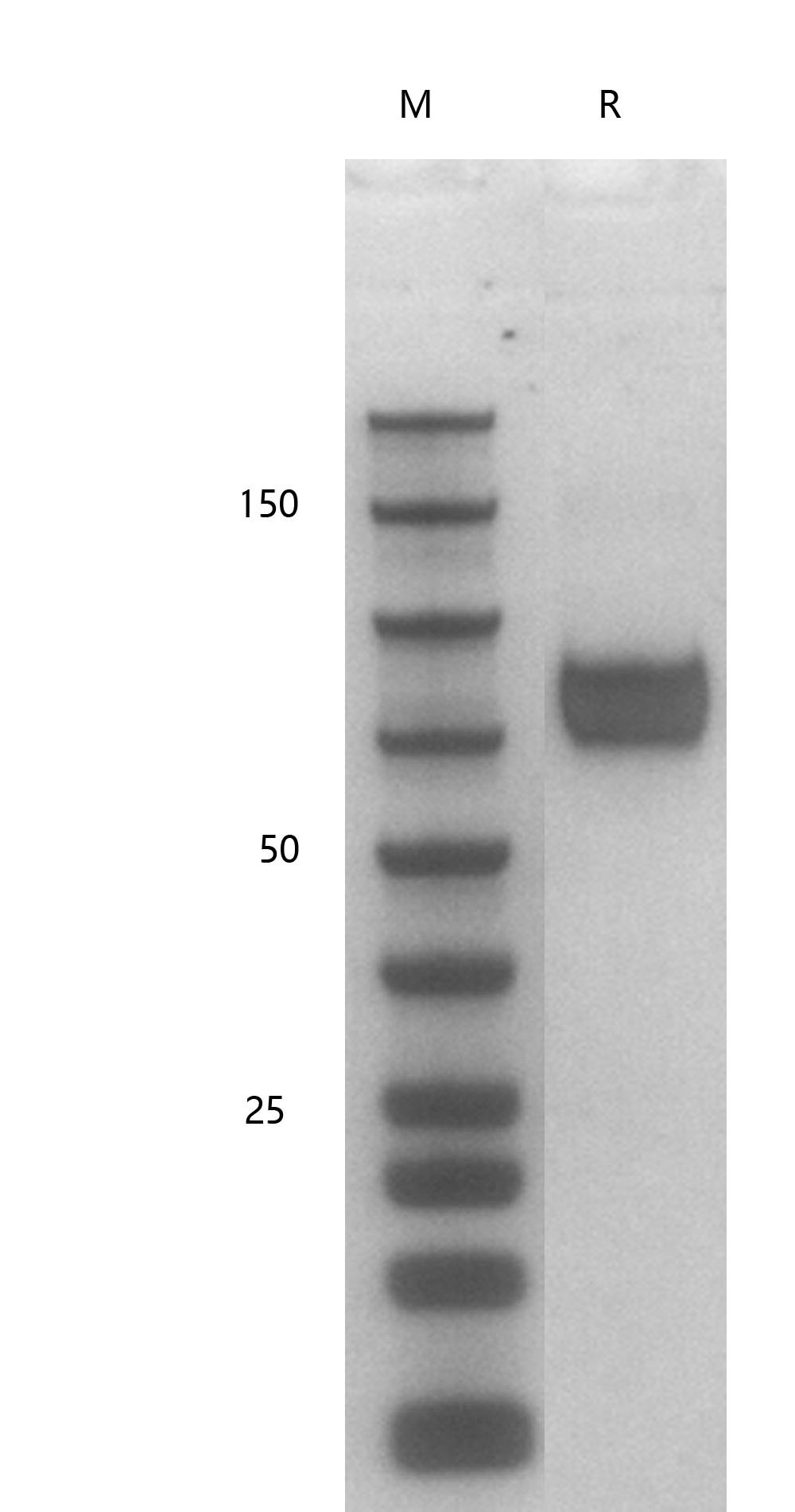 | Molecular Mass : | The protein has a calculated MW of 50kDa.The reducing (R) heterodimer protein migrates as 70-90 kDa due to glycosylation |