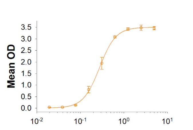 Measured by its binding ability in a functional ELISA. When Human CD22 Antibody is immobilized at 0.2 µg/mL (100 µL/well), Biotinylated Recombinant Human CD22 Fc Chimera Avi-tag binds with an ED50 of 1.5-18 ng/mL. |