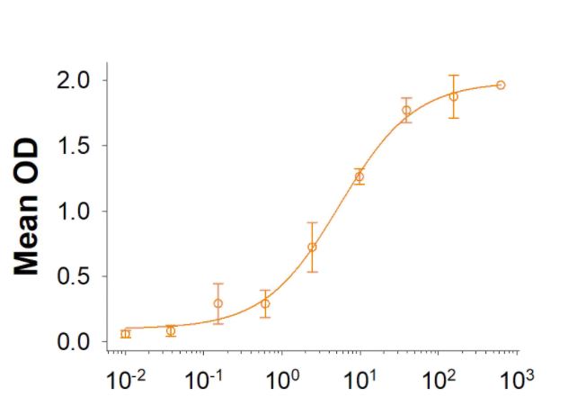 Measured in a cell proliferation assay using mouse CD4+ cells in the presence of anti-CD3. The ED50 for this effect is 3-12 μg/mL. Measured by its binding ability in a functional ELISA. When Human CD276 Antibody is immobilized at 1.0 μg/mL, 100 μL/well, the concentration of Biotinylated Recombinant Human CD276 His-tag Avi-tag that produces 50% of the optimal binding response is approximately 3 -15 ng/mL. |