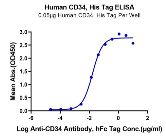 | Bio-activity : | Immobilized Human CD34, His Tag at 0.5μg/ml (100μl/Well) on the plate. Dose response curve for Anti-CD34 Antibody, hFc Tag with the EC50 of 16.5ng/ml determined by ELISA. |