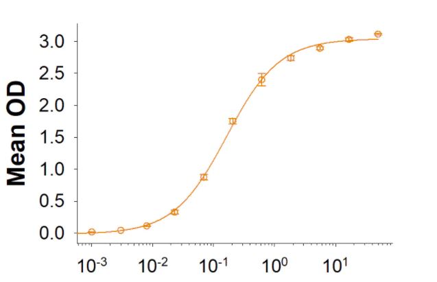 Measured by its binding ability in a functional ELISA. When Recombinant Human CD40 Fc (HEK293-expressed) mobilized at 2 μg/mL (100 μL/well), the concentration of Recombinant Human CD40 Fc Chimera Avi-tag that produces 50% optimal binding is 40-320 ng/mL. |