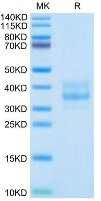 | Molecular Mass : | The protein has a predicted MW of 25.15 kDa. Due to glycosylation, the protein migrates to 35-45 kDa based on Bis-Tris PAGE result. |
