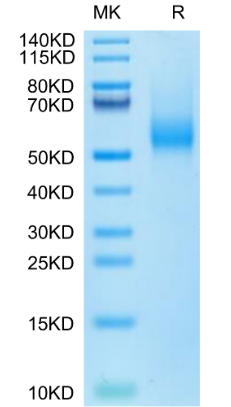 | Molecular Mass : | The protein has a predicted MW of 36.79 kDa. Due to glycosylation, the protein migrates to 50-70 kDa based on Bis-Tris PAGE result. |