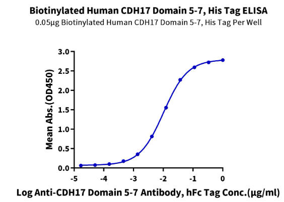 Active Recombinant Human CDH17 Domain 5-7 protein, His-tagged, Biotinylated, Primary Amine Labeling