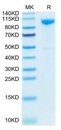 | Molecular Mass : | The protein has a predicted MW of 86.1 kDa. Due to glycosylation, the protein migrates to 90-115 kDa based on Bis-Tris PAGE result. |