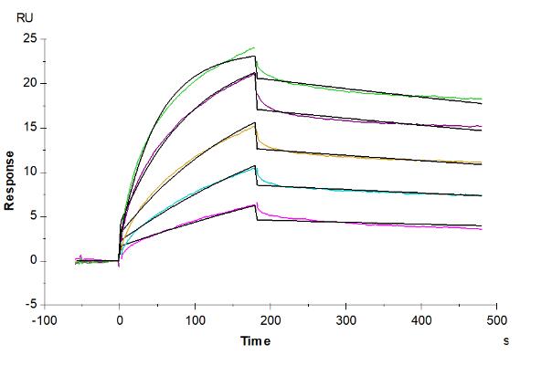 | Bio-activity : | Biotinylated Human Claudin18.2 VLP captured on CM5 Chip via Streptavidin can bind Anti-Claudin18.2 Antibody with an affinity constant of 1.28 nM as determined in SPR assay (Biacore T200). |