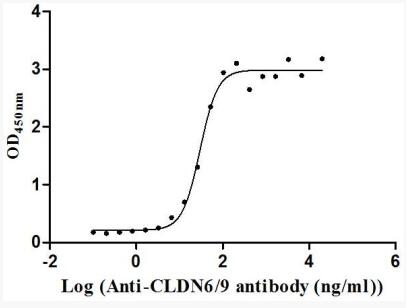 Measured by its binding ability in a functional ELISA. Immobilized Human CLDN4 at 5μg/mL can bind Anti-CLDN4 recombinant antibody, the EC50 is 29.56-50.75 ng/mL. |