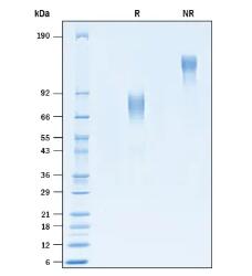 | Molecular Mass : | Predicted Molecular Mass: 50 kDa SDS-PAGE: 70-85 kDa, under reducing conditions |