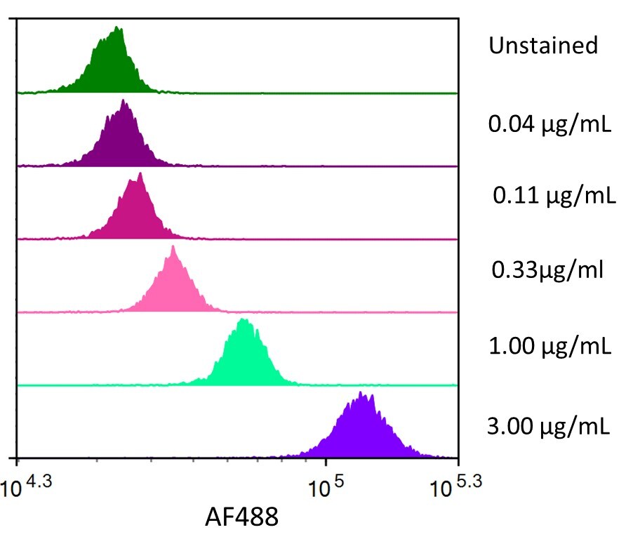 | Bio-activity : | Measured by flow cytometry for its ability to bind anti-human TSLPR Monoclonal Antibody conjugated beads. The concentration of Recombinant Human TSLPR Fc Chimera Alexa Fluor® 488 that produces 50% of the binding response is 0.10-1.00 μg/mL. |