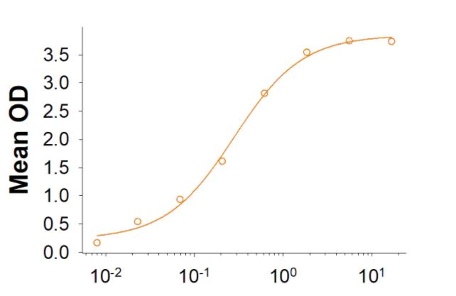 Fractalkine, also known as CX3C motif chemokine 1, CX3CL1, neurotactin and small-inducible cytokine D1, is the only member of the CX3C subfamily of the chemokine superfamily (1). Mature human Fractalkine consists of an N-terminal chemokine domain with a CX3C motif and a mucin-like stalk region in the extracellular domain (ECD), a transmembrane segment and a short cytoplasmic domain (1, 2). The soluble form of Fractalkine is generated via ADAM10 and ADAM17 cleavage (1). Within the ECD, human Fractalkine shares 59% amino acid sequence identity with both mouse and rat Fractalkine. Fractalkine exists as both a membrane-bound adhesion molecule and as a soluble proinflammatory chemoattractant and anti-inflammatory neuroprotective agent (1-3). The expression of CX3CL1 is higher in spinal metastases from kidney cancer (4). The expression of CX3CL1 was also reported to be up-regulated in endothelial cells and microglia by inflammatory signals. Membrane-bound CX3CL1 has been shown to promote adhesion of leukocytes. The soluble chemokine domain of human CX3CL1 was reported to be chemotactic for T cells and monocytes while the soluble chemokine domain of mouse CX3CL1 was reported to chemoattract neutrophils and T-lymphocytes but not monocytes (5). Most of the functions of CX3CL1 are exerted through the CX#CL1/CX3CR1 axis which has the therapeutic prospect (5, 6). Our Avi-tag Biotinylated Recombinant Fractalkine features biotinylation at a single site contained within the Avi-tag, a unique 15 amino acid peptide. Protein orientation will be uniform when bound to streptavidin-coated surface due to the precise control of biotinylation and the rest of the protein is unchanged so there is no interference in the protein's bioactivity. |