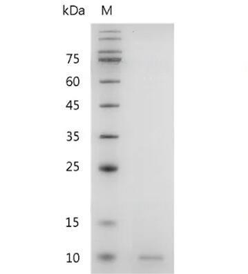 Molecular Mass : | The protein has a calculated MW of 8.51 kDa. The protein migrates as 12 kDa under reducing condition (SDS-PAGE analysis). |