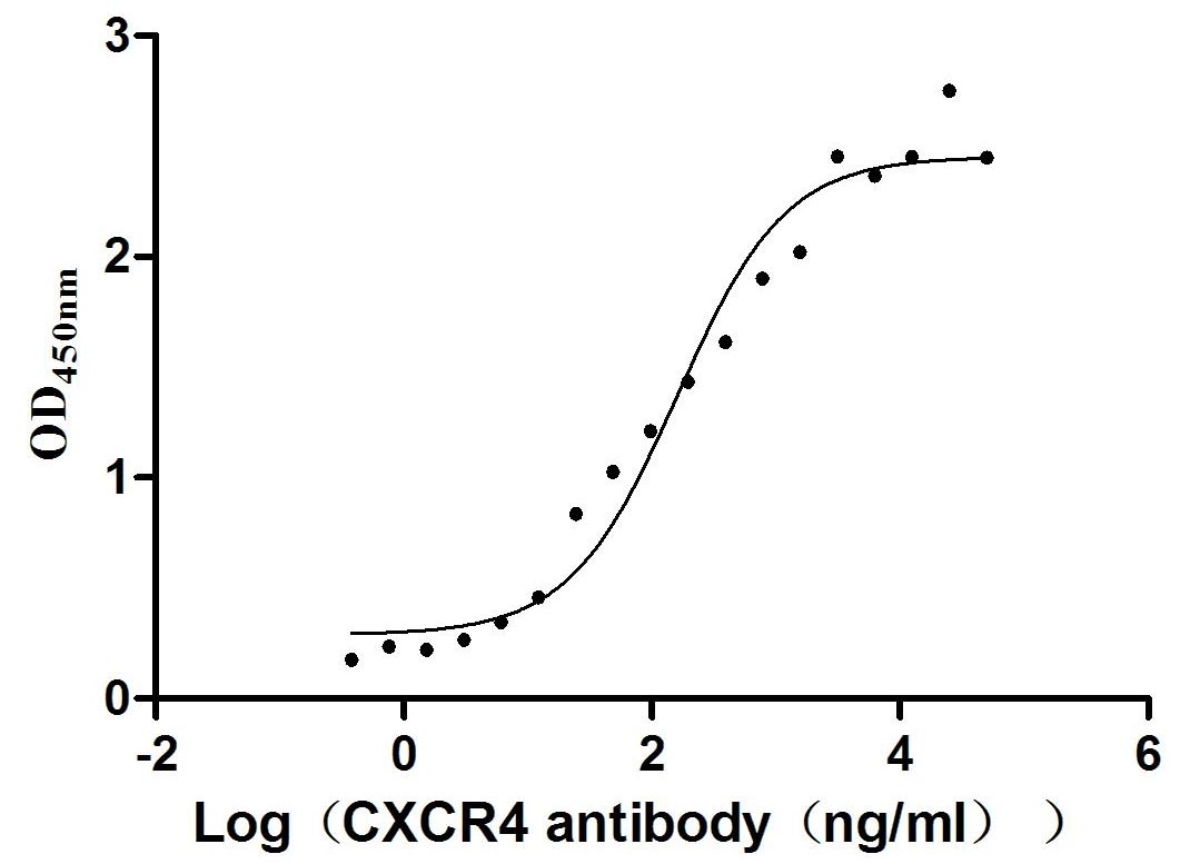 | Bio-activity : | Measured by its binding ability in a functional ELISA. Immobilized Human CXCR4 at 10 μg/mL can bind Anti-CXCR4 recombinant antibody, the EC50 is 101.7-253.6 ng/mL. |
