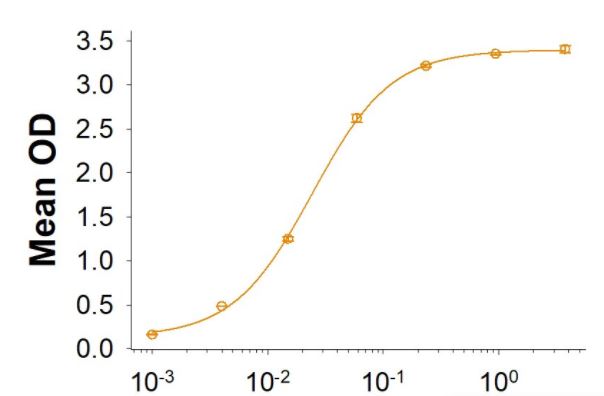 Measured by its binding ability in a functional ELISA. When Recombinant Human Notch-1 Fc Chimera is coated at 250 ng/mL (100 μL/wll), Biotinylated Recombinant Human DLL4 Fc Chimera Measured by its binding ability in a functional ELISA. When Recombinant Human Notch-1 Fc Chimera is coated at 250 ng/mL (100 μL/wll), Biotinylated Recombinant Human DLL4 Fc Chimera Avi-tag protein binds with an ED50 of 0.012-0.12 μg/mL. |