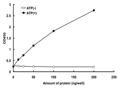 | Bio-activity : | The activity was determined by ELISA. The enzyme was incubated with GST-fused substrate protein and tRNA, and after stopping kinase reaction by EDTA, the reaction solution was transferred into glutathione-coated plate. Phosphorylation was detected by anti-phospho antibody and HRP-labeled anti-rabbit IgG. Substrate: EIF2S1. ATP: 100 μM. |