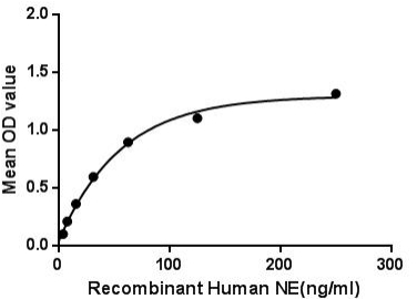 Elastase2 (ELA2), elastase 2 is a serine proteinase in the same family as chymotrypsin and has broad substrate specificity. Secreted by neutrophils and macrophages during inflammation, it destroys bacteria and host tissue. The neutrophil form of elastase is 218 amino acids long, with two asparagine-linked carbohydrate chains (see glycosylation). Neutrophil elastase may play a role in degenerative and inflammatory diseases by its proteolysis of collagen-IV and elastin of the extracellular matrix. This protein degrades the outer membrane protein A (OmpA) of E. coli as well as the virulence factors of such bacteria as Shigella, Salmonella and Yersinia. Besides, Collagen Type XVII (COL17) has been identified as an interactor of ELA2, thus a binding ELISA assay was conducted to detect the interaction of recombinant human COL17 and recombinant human ELA2. Briefly, ELA2 were diluted serially in PBS, with 0.01% BSA (pH 7.4). Duplicate samples of 100uL were then transferred to COL17-coated microtiter wells and incubated for 2h at 37°C. Wells were washed with PBST and incubated for 1h with anti-ELA2 pAb, then aspirated and washed 3 times. After incubation with HRP labelled secondary antibody, wells were aspirated and washed 3 times. With the addition of substrate solution, wells were incubated 15-25 minutes at 37°C. Finally, add 50µL stop solution to the wells and read at 450nm immediately. The binding activity of ELA2 and COL17 was shown, and this effect was in a dose dependent manner. |