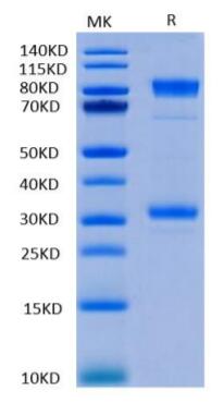 | Molecular Mass : | The protein has a predicted MW of 77.3kDa same as Bis-Tris PAGE. Another band is negative Fc. |