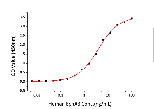 | Bio-activity : | Measured by its binding ability in a functional ELISA.Immobilized Human EFNA5 at 0.5μg/mL (100 μL/well) can bind Human EPHA3 with a linear range of 0.01-3.9 ng/mL. |