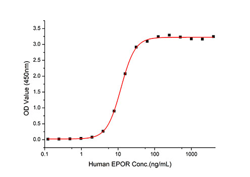 | Bio-activity : | Measured by its binding ability in a functional ELISA. Immobilized Human EPO Protein at 2μg/mL (100 μL/well) can bind EPOR with a linear range of 0.24-12.02 ng/mL. |