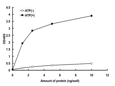 | Bio-activity : | The activity was determined by ELISA. The enzyme was incubated with biotinylated peptide in streptavidin-coated ELISA plate. Phosphorylation was detected by HRP-labeled anti-phospho antibody. Substrate: Lyn substrate peptide. ATP: 5 µM |