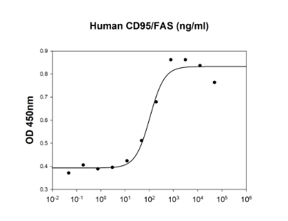 Measured by ability to inhibit FAS ligand-induced apoptosis assay using Jurkat human acute T cell leukemia cells in the presence of 2 ng/mL of human FAS ligand. The ED50 range ≤ 200 ng/mL. |