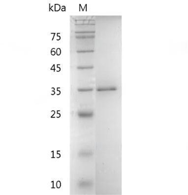Molecular Mass : | The protein has a calculated MW of 29.35 kDa. The protein migrates as 36 kDa under reducing condition (SDS-PAGE analysis). |