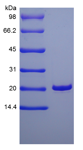 Human KGF-1 also known as Fibroblast growth factor 7 (FGF-7), is encoded by the FGF7 gene. KGF-1 only binds to the b splice form of the tyrosine kinase receptor, FGFR2b KGFR. Affinity between KGF-1 and its receptor can be increased by heparin or heparan sulfate proteoglycan. FGF-10, also called keratinocyte growth factor 2 (KGF-2), shares 51 % amino acid sequence identity and similar function to KGF-1, but uses an additional receptor, FGFR2c. KGF-1 plays an important role in the regulation of embryonic development, cell proliferation and cell differentiation. KGF-1 actives on keratinocytes, and exhibits mitogenic activity for epidermal cells, but essentially no activity for fibroblasts. KGF-1 has species crossactive, human KGF-1 shares 96 % amino acid sequence identity with murine, and 92 % with rat. |