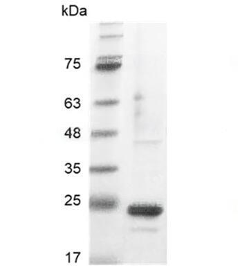 Molecular Mass : | The protein has a calculated MW of 22.14 kDa. The protein migrates as 24 kDa under reducing condition (SDS-PAGE analysis). |