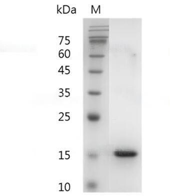 Molecular Mass : | The protein has a calculated MW of 18.6 kDa. The protein migrates as 19 kDa under reducing condition (SDS-PAGE analysis). |