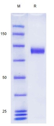 | Molecular Mass : | The protein has a calculated MW of 63kDa.The reducing (R) heterodimer protein migrates as 70-100 kDa due to glycosylation |