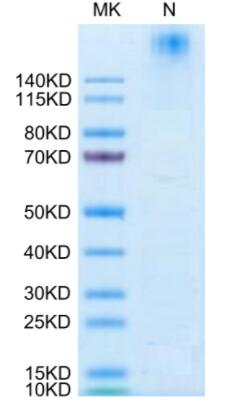 Molecular Mass : | The protein has a predicted MW of 258 kDa. Due to glycosylation, the protein migrates to 260-265 kDa under Non reducing (N) condition based on Tris-Bis PAGE result. |