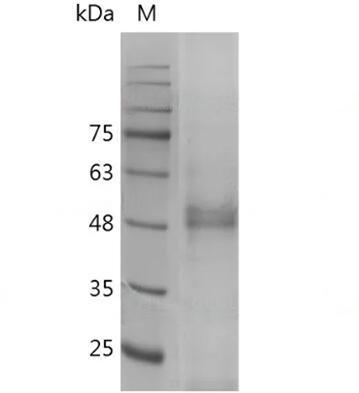 Molecular Mass : | The protein has a calculated MW of 36.33 kDa. The protein migrates as 35-48 kDa under reducing condition (SDS-PAGE analysis). |