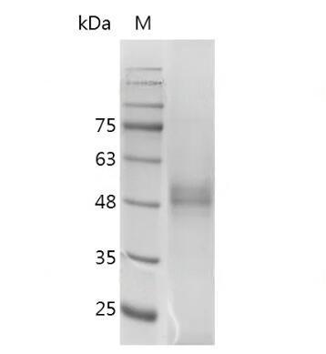 Molecular Mass : | The protein has a calculated MW of 36.36 kDa. The protein migrates as 35-48 kDa under reducing condition (SDS-PAGE analysis). |