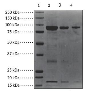 | Product Overview : | Recombinant full length human HSP90AB1 protein (2-724) with a N-terminal Histidine tag was expressed in E. coli. |