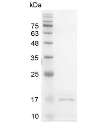 Molecular Mass : | The protein has a calculated MW of 17.7 kDa. The protein migrates as 17 kDa under reducing condition (SDS-PAGE analysis). |