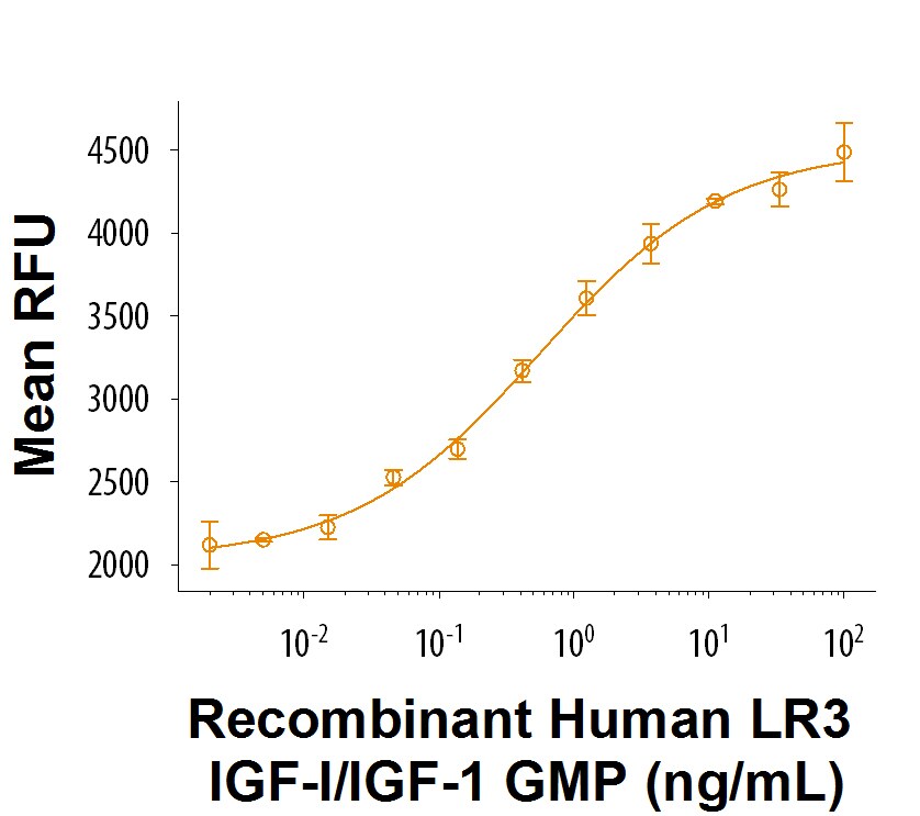 | Bio-activity : | Measured in a serum-free cell proliferation assay using MCF-7 human breast cancer cells. The ED50 for this effect is 0.3-1.5 ng/mL. IGFBP-3 does not inhibit its activity. |