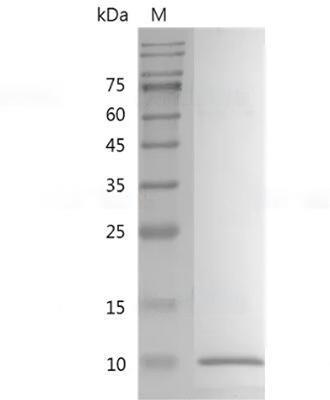 | Molecular Mass : | The protein has a calculated MW of 8.28 kDa. The protein migrates as 11 kDa under reducing condition (SDS-PAGE analysis). |