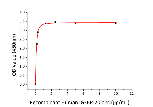 | Bio-activity : | Measured by its binding ability in a functional ELISA. Immobilized Recombinant Human IGFBP-2 at 5 μg/mL (100 μL/well) can bind Recombinant Human IGF1 with a linear range of 53-212 ng/mL. |