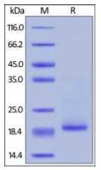 Molecular Mass : | This protein carries a polyhistidine tag at the N-terminusThe protein has a calculated MW of 19.5 kDa. The protein migrates as 19 kDa under reducing (R) condition (SDS-PAGE) due to glycosylation. |