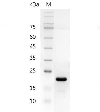 | Molecular Mass : | The protein has a calculated MW of 19.95 kDa. The protein migrates as 24 kDa under reducing condition (SDS-PAGE analysis). |