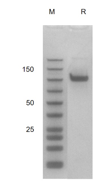 | Molecular Mass : | The protein has a calculated MW of 85kDa.The reducing (R) heterodimer protein migrates as 90-120 kDa due to glycosylation |